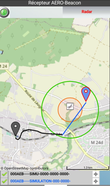 Le Récepteur AERO-Beacon acquière en Temps Réel les balises de signalement des Drones(UAV) et les affiche sur une carte.